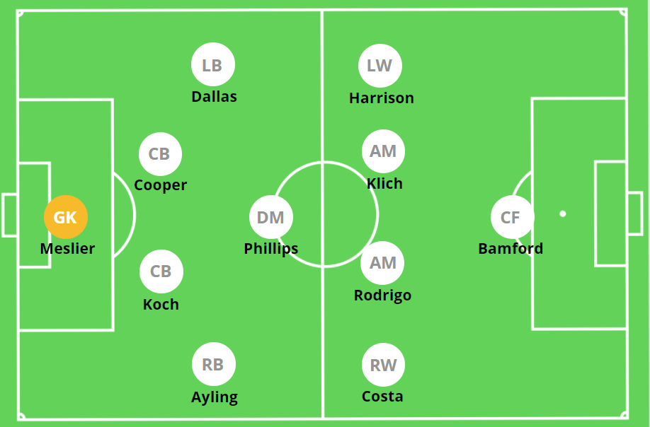 Meslier has been one of the top goalkeepers in the league so far this season, and in front of him he has a robust back-four of Luke Ayling, Stuart Dallas, Robin Koch and Liam Cooper. Kalvin Phillips anchors the midfield and screens the back-four, allowing Mateusz Klich and Rodrigo to surge forward in attack more often. The flanks are occupied by former Wolves man Helder Costa and former MLS star Jack Harrison, who have both started eight out of the nine matches so far. Up top, Patrick Bamford has been one of the Premier League’s surprising performers so far, scoring 7 goals in 8 games (50% of his team’s goals).
