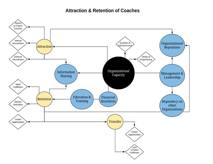 This study aims to identify the elements of organizational capacity and leadership that may be valuable for CSOs to ensure athlete and coach attraction and retention, while avoiding athlete and coach transfer from one club to another within the same municipality. The assumption is that if CSOs attract and retain valuable human resources such as athletes and coaches, they will be more likely to meet their organizational goals (Misener & Doherty, 2009). This study may also aim to identify if any intervention at the league level is necessary in setting boundaries or rules for athlete and coach movement between clubs, such as the boundary zones set in hockey in Canada (Edwards, 2016). Finally, this study attempts to create a framework for athlete/coach attraction, retention and transfer that may be helpful for organizations in understanding how to keep key organizational members at their club and as a result, meet their organizational goals.