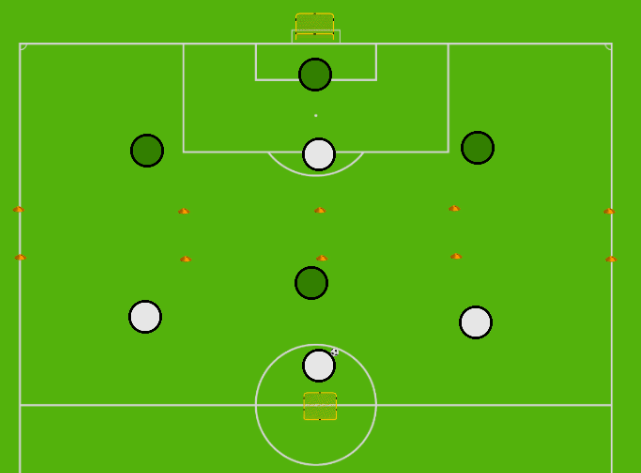 penetrate in either a central or wide area by finding a target. Attacking team works on supporting angles and triangle shapes to combine and create the right shooting moment.