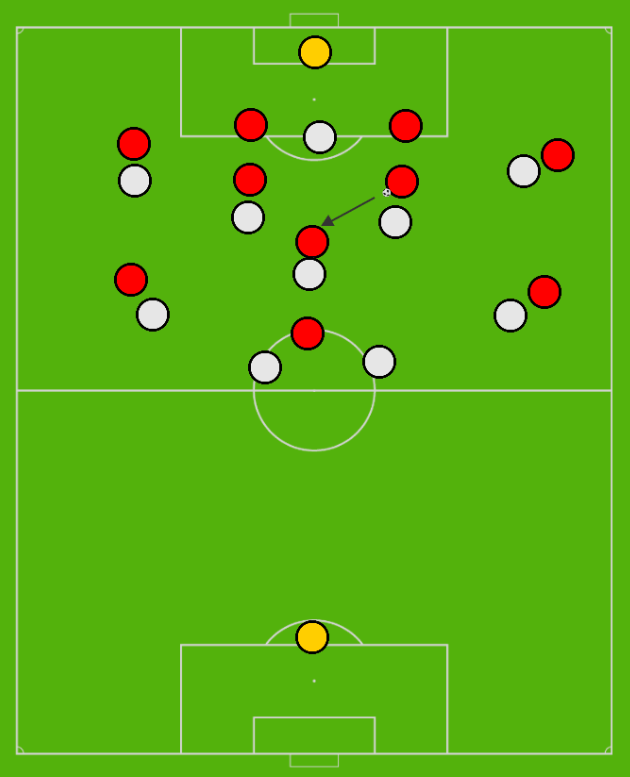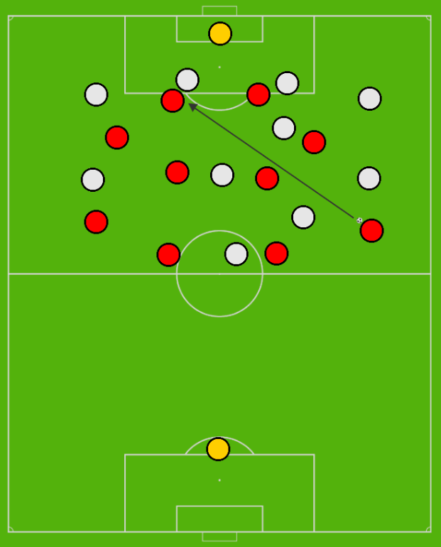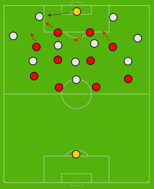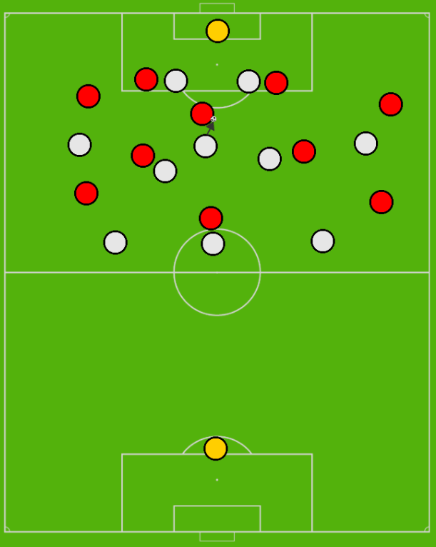 If the Saints are able to regain possession, they then often have four men in attack, who are able to overload the off-balance opposition. In possession, teams will often stretch themselves with width and may even overload one specific side. This can cause them to be off-balance, should they lose the ball. High pressing teams like the Saints are able to take advantage of that, by winning the ball back high up the field and going on the attack right away.