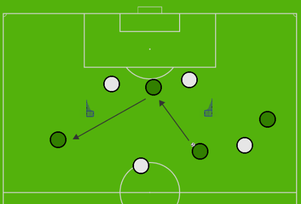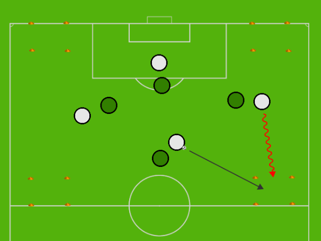 – Don’t chase the ball around. Have players on both sides to switch play.