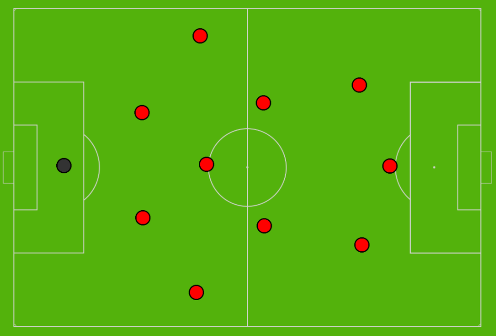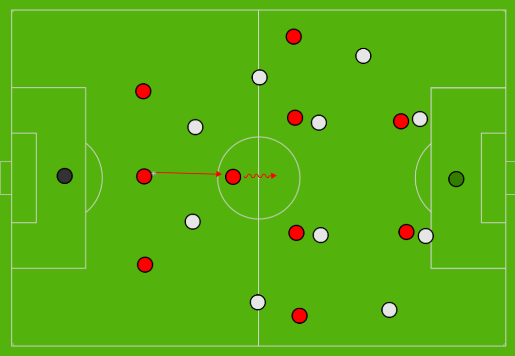 Brentford play a vertical style of football that condenses central areas, in order to expose more space out wide for the likes of fullbacks / wing-backs to exploit. Frank’s team also create loads of opportunities for themselves through their aggressive press, which also allows for attacks to start down the middle and continue toward the box at speed.