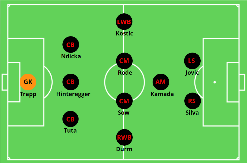 Deploying the 3-4-2-1 or 3-4-1-2 would be one of the safer approaches Glasner could take as a whole, as all players will be familiar with both systems. Moreover, having finished fifth last season, Die Adler have proven how capable they are at achieving success utilizing a back-three. What suits Glasner particularly well is the mix of verticality and width they utilized, even despite relying so heavily on chance creation from wing-backs.