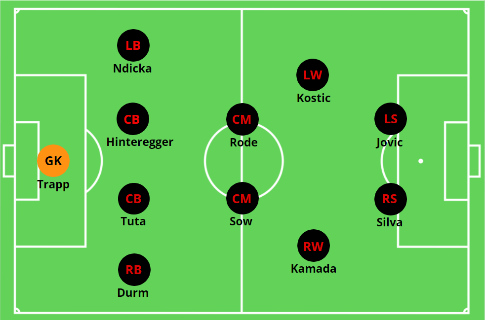 Oliver Glasner played his preferred 4-2-3-1 formation a total of 29 times in 34 matches last season. As he arrives in Frankfurt, the question then becomes – will Glasner stick to his system, or adapt to Frankfurt’s? The 4-2-3-1 benefited Wolfsburg’s directness, verticality and intelligent pressing. It was a very narrow 4-2-3-1, and one that always looked to funnel passes into Wout Weghorst and play to the big man’s strengths. At Wolfsburg, Glasner utilized a more defensive presence as the team’s number 10, with chance creation and attacking fervidity coming more from very narrow wingers and central midfielders galloping forward. All of them worked in tandem to feed Wout Weghorst, which again, should be similar to what can be accomplished next season with Andre Silva. While Kamada is more of a creator, he could also play on the right wing in any formation, as Kostic continues to play in an advanced role on the left.