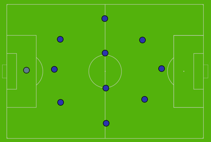 Nuno’s team set up in a 4-3-1-2 (4-4-2 diamond) formation. If you want to see some of the complications of this formation, all you have to do is watch Rose’s Borussia Dortmund or read one of our analyses of them this season. For Spurs in this shape, Dele Alli played at the top of the diamond rather than as part of a midfield three, as Harry Winks entered the fold in his stead. Lucas Moura, normally a winger, played up top with Kane and showed some bright moments of dribbling and trickery. But the main problem with this system – Tottenham had no mechanisms for natural width in attack, and no balance between the two sides.