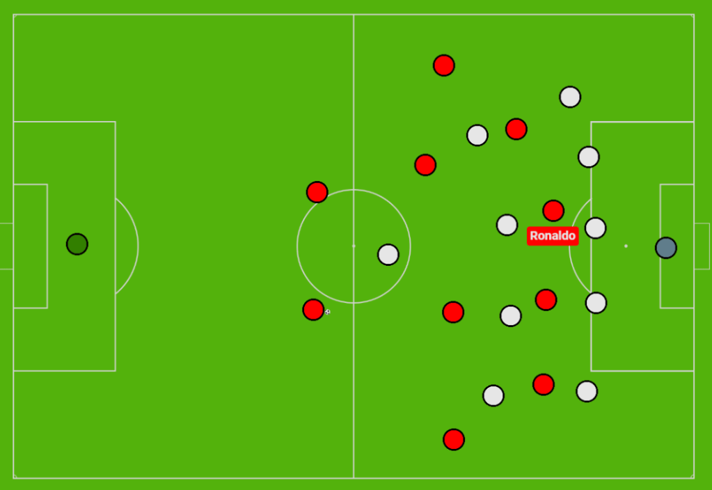 Manchester United kept the bulk of the possession, but made attempts to be more progressive than the slow possession approach of some early matches in 2020-21. Matic constantly looked to play incisive vertical passes forward into the path of Portuguese duo Ronaldo and Bruno, as did Paul Pogba, which should be expected of the Frenchman given his range.