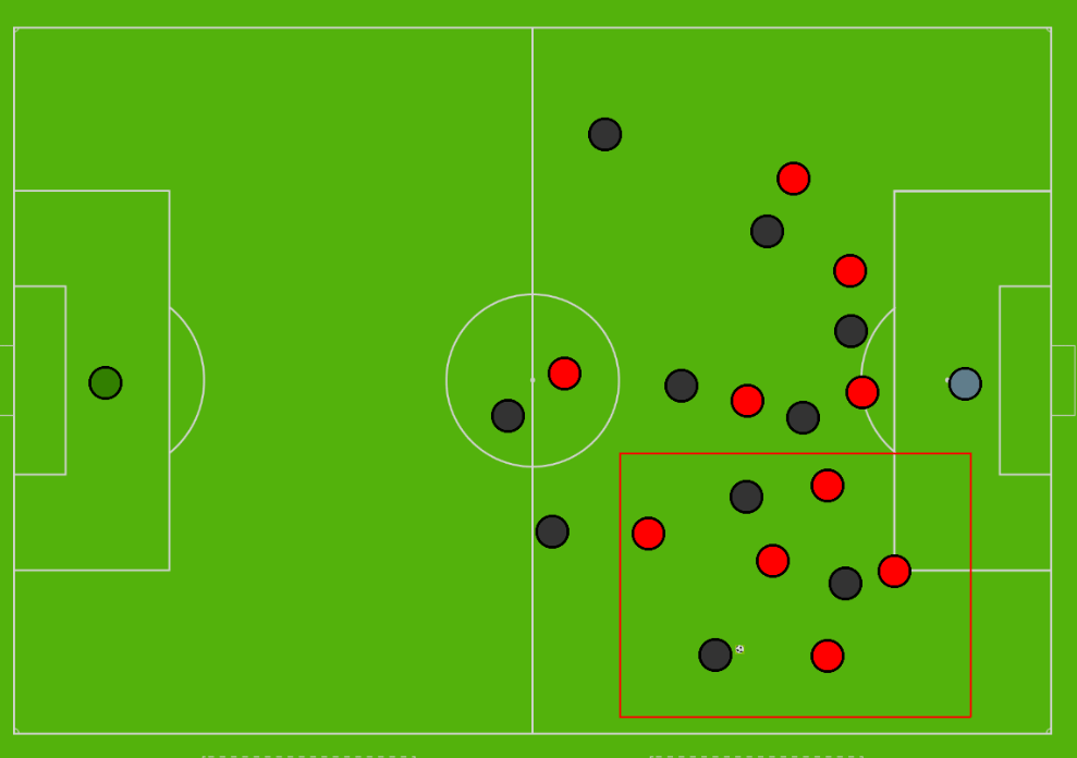 Greuther Furth only got going after Bayern’s red card, and otherwise looked to defend with as many players behind the ball as possible, compacting central areas. But even when defending with ten men behind the ball, someone like Kimmich was still able to drift in at the last second, find space, and strike the ball into the back of the net.