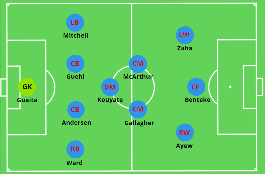 But Gallagher isn’t the only new signing that’s fit in right away. Vieira’s had much success deploying two brand new centre-backs – Joachim Andersen, who was a standout for relegated Fulham last season, and Marc Guehi, who’s also come in from Chelsea after a successful season on loan with Swansea. Both players fit the Palace mold of being good in the air and solid defensive shufflers, but they also fit the Vieira mold of being good in possession and better out from the back than some of Palace’s former men. Having two formidable centre-backs who have the durability and youth to play every game has also allowed Cheikhou Kouyate a return to his normal position, where he’s excellently anchored the midfield line. James McArthur’s also retained his place despite the change in manager, taking on the armband and playing a more forward-thinking box-to-box role this season.