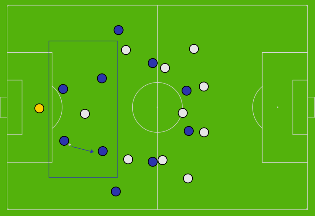 Gil and Buchanan meanwhile are often used as mechanisms to switch play centrally out wide, where a fullback may look to deliver a cross from wide. While they may look to engage their strikers early on in moves, they have also delivered the most crosses per game (22) this season, and frequently create chances from out to in rather than going direct all the time. Jones is more likely to sit one up from deeper on the field, whereas Bye will frequently get up and down the by-line and get closer to the end-line when he delivers into the box. Due to the greater attacking position he poses, it’s no surprise that Bye has been the one to deliver more crosses on a match by match basis. However, it’s actually Jones that has assisted more goals and created more chances. The point of all of this is to say that while their build-up may start from the two centre-backs and two central midfielders, all eleven players are important to the process of progressing the ball into the final third for New England to score goals.