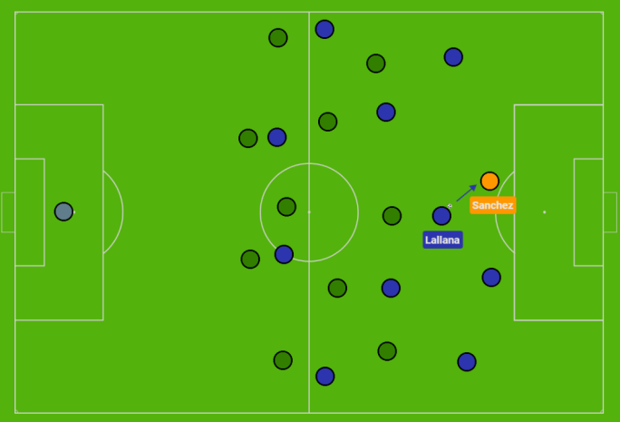 Embed from Getty ImagesBy the same token, Brighton use Robert Sanchez to achieve positive results in their build-up. As Adam Lallana receives with his back to pressure in the image below, he still has many options. He could go into the middle centre-back, but that area of the field is slightly congested. Instead, the best option is to play in his goalkeeper, who has acres of space ahead of him.