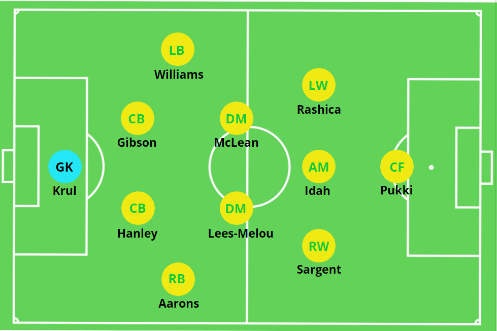 Embed from Getty ImagesThe one key facet to their game in possession is in the role of the attack-minded fullbacks – Max Aarons and Brandon Williams. On loan from Manchester United, Brandon Williams might be the most capable defender Norwich have on their roster, while Aarons is critical to the way the Canaries attack, as susceptible as he’s been this season in defense. He’s completed more carries, dribbles, passes into the penalty area, and been the target of the most passes for his team. All of this points to an important role for his team, to which Norwich have been slightly reserved in taking full advantage of. Only one fullback is allowed to go at a time, giving the shape somewhat of a 3-3-4 look in attack as Aarons overlaps. Given that Williams is also energetic and plays well in give and go situations down the wide areas, Norwich could consider getting both of their fullbacks up the pitch at once.