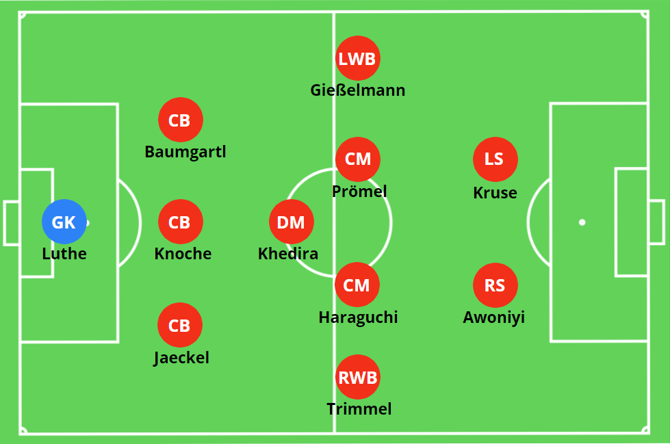 Union Berlin have played all twenty matches so far this campaign in a back-three, shaping up in either a 3-1-4-2 (17 matches) or 3-4-1-2 (3 matches). With a big squad, Fischer has loads of room to move things around, but still keeps a steady set of reliable figures at the forefront. Marvin Friedrich, rather foolishly, departed for Borussia Monchengladbach in January, which has allowed for 23-yearold Paul Jaeckel to accumulate more minutes at the back. He’s partnered by the experience of former Wolfsburg man Robin Knoche, and the solid Timo Baumgartl, who’s more adventurous in getting forward than the other two. Andreas Luthe sits behind them in goal, and continues to establish himself as one of the best keepers in the league with his six clean sheets so far.