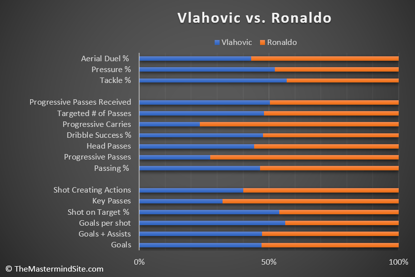 Embed from Getty ImagesGiven that Dusan Vlahovic is not the best with the ball at his feet, we wanted to identify how closely the Serbian striker compares to the Portuguese legend – if at all.