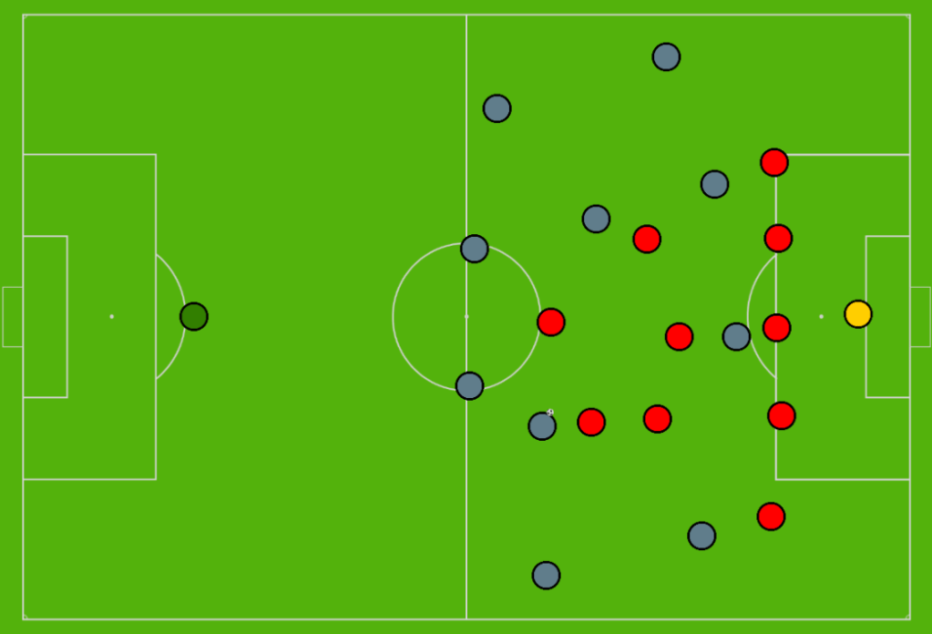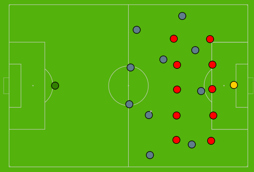 Overall, Atletico’s organization on the day between three distinct lines, followed up by their urgency when it mattered most, allowed them to put on a defensive masterclass. It had nothing to do with a 5-5-0, even if the strikers sat deeper than expected.