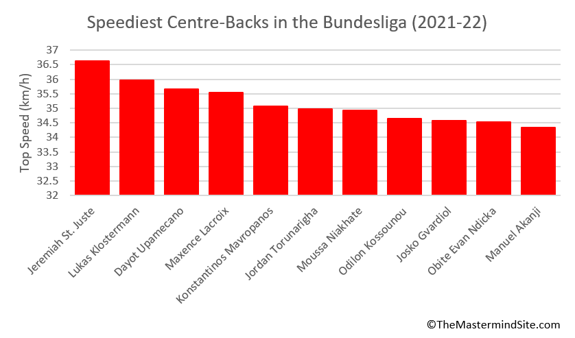 Top speed data is generally hard to come by due to its perceived irrelevance. But as innovators always breaking the mold, the Bundesliga provides top speed data assessed by the fastest speed a player reached on a single occasion across the campaign. While it may be only one instance, it still provides a useful metric of a player’s potential speed, and ability to cover in behind a significantly slower defender alongside them (see Manuel Akanji at Dortmund). Of these names, only a few would be ready for this kind of leap – including young French defender Maxence Lacroix, Leipzig’s versatile Josko Gvardiol, and the outstanding man we just referenced – Manuel Akanji. All three of these players fit the mold of what United should realistically be looking for in a new central defender.