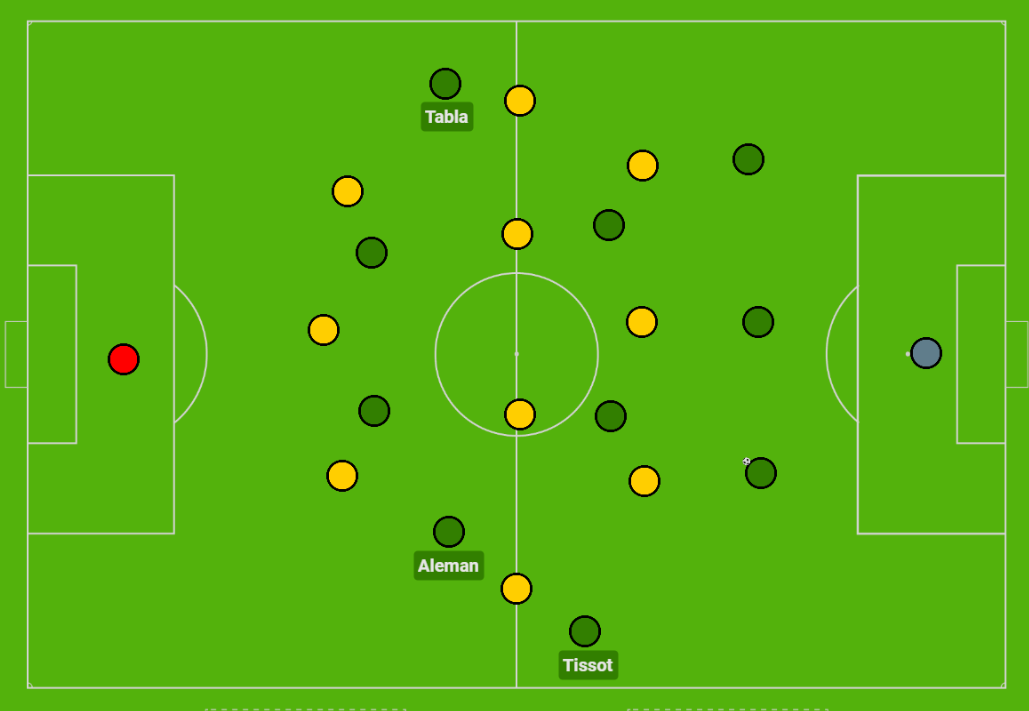 With a high line away from the goalkeeper, Jönsson found himself attracted to the wrong man shortly after the delivery, and Romero was able to take advantage of the gap in between the midfielder and Metusala. As the team sort this out, double teaming key opposition players may be a potential solution, as would taking a player out of the wall and putting him in the box instead. On both Didic’s goal and this one from Romero, two players lined up in the defensive wall, when one might have done the trick.