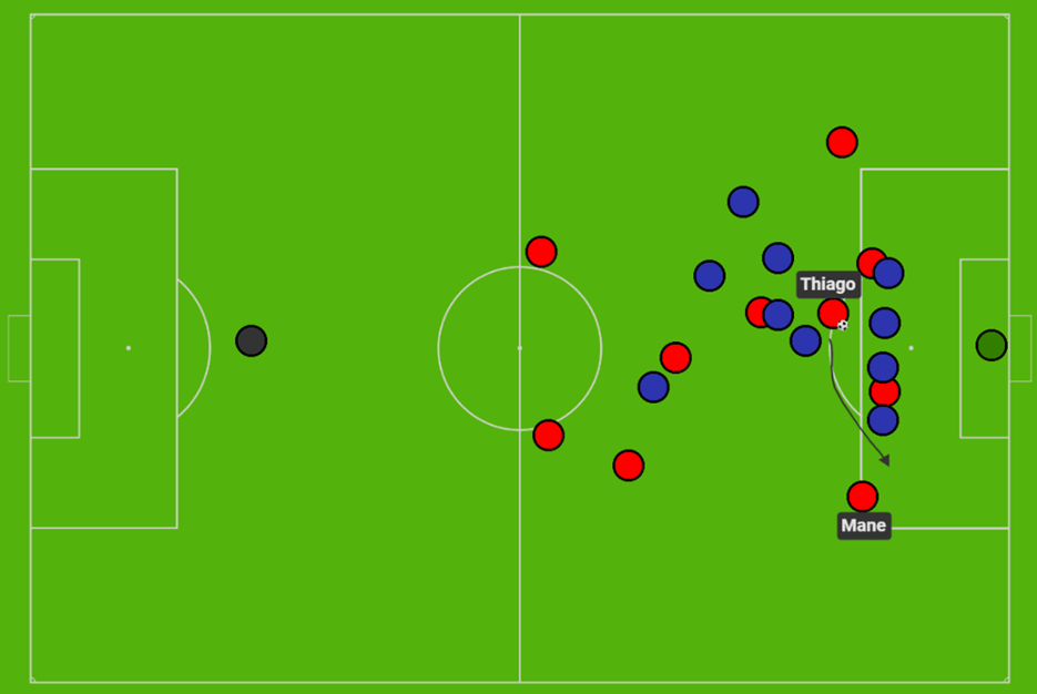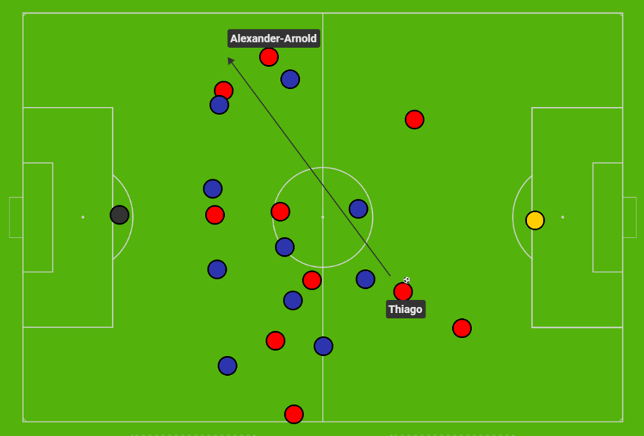 Since his arrival in 2020, Thiago has amplified his already impeccable off the ball movement and defensive intelligence with the hands-on support of Jurgen Klopp and his coaching staff. Having come from playing in a midfield two of a 4-2-3-1 system under Hansi Flick at Bayern Munich, Thiago needed to quickly learn his defensive and offensive roles in a well constructed three-man midfield.