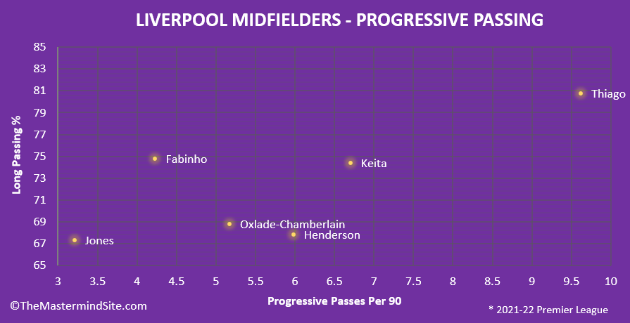 Embed from Getty ImagesAfter an adjustment period in 2020-21, Thiago has adapted well in 2021-22, becoming more progressive in his long passing attempts. This very site was critical of Thiago’s sideways switches of play that only slowed Liverpool’s tempo last season, but it’s clear that the Spaniard offers Liverpool a sense of progressiveness that no other midfielder can match.