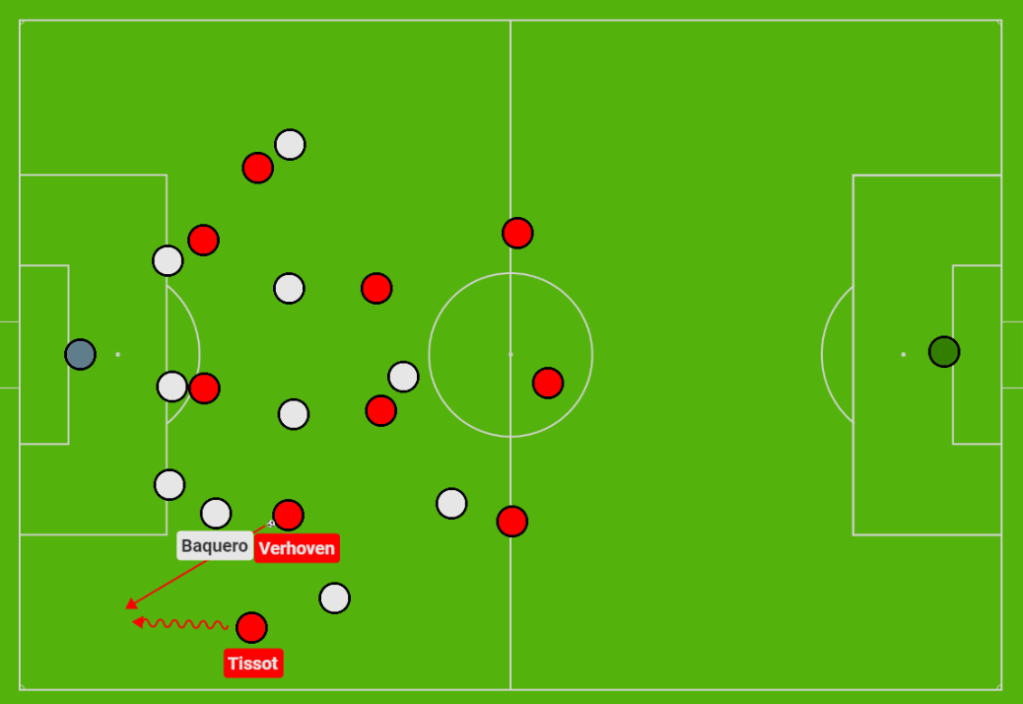 That’s a monstrous task against Ollie Bassett and Ben McKendry in Atletico’s midfield, not to mention Nathan Ingham’s stellar reaction saves in behind the back-line. As a result, Valour can look to involve Dyer earlier on in attacking moves, particularly in targeting the space in behind Maxim Tissot as he ventures forward. MacDonald Niba has done a remarkable job covering in behind for the former Forge man, but Dyer has the pace and power to give the Atletico defender a run for his money. The New Zealander already plays like a number ten in possession, and so should amplify that approach against Atletico in taking more moments to drift in-field to receive the ball in front of Atletico’s midfield, where others can then run in behind. It’s a simple rotation, but an effective one that could easily cause chaos to a remarkably robust unit.