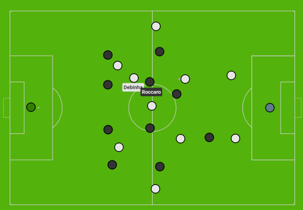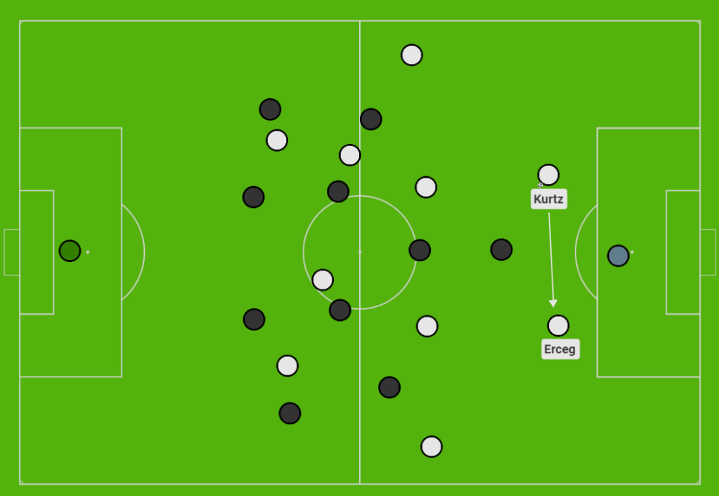 As already mentioned, Erceg was the key figurehead and focal point of attacking play, spreading diagonal passes to Daniels, whilst Kurtz remained far more safe and simplistic with her passing.