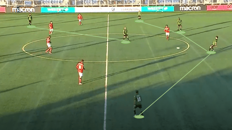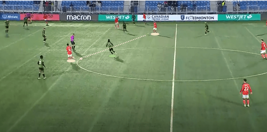 Further down the pitch, their overly narrow positioning from their full-backs allowed some level of room out wide for Edmonton to receive.