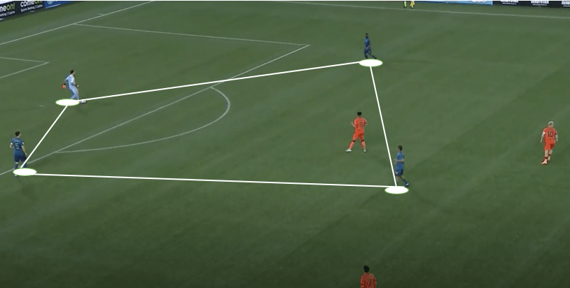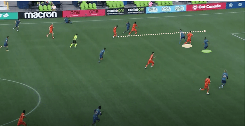 Further down the pitch, their overly narrow positioning from their full-backs allowed some level of room out wide for Edmonton to receive.