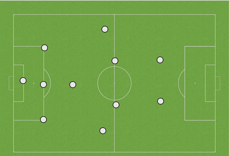 The above is an example of how Schreuder’s teams like to build up from the back. As we can see, the wingbacks typically go as wide as the touchline, which allows for greater ability to play through the centre of the pitch. Aiding in this approach, the two outside centre-halves spread wide to stretch the field all the more, and the defensive midfielder drops in at the top of the build-up diamond. As often seen in a modern day 4-3-3, the team often play with a false nine. When deploying a 3-5-2, the other striker can then run in behind, as the false nine drifts toward the ball. Either way, Schreuder encourages a quick and intense build-up-play, which includes hard off-the-ball work to create space.