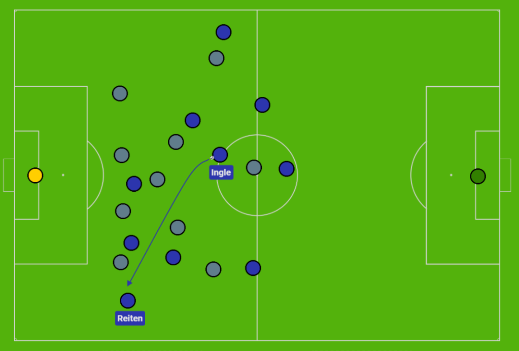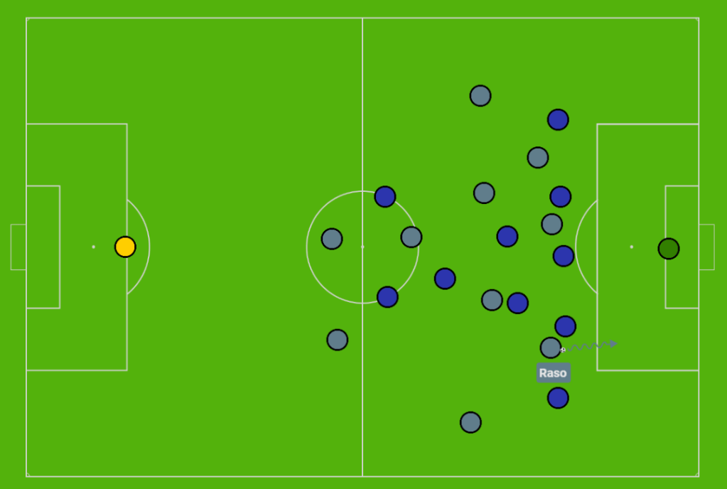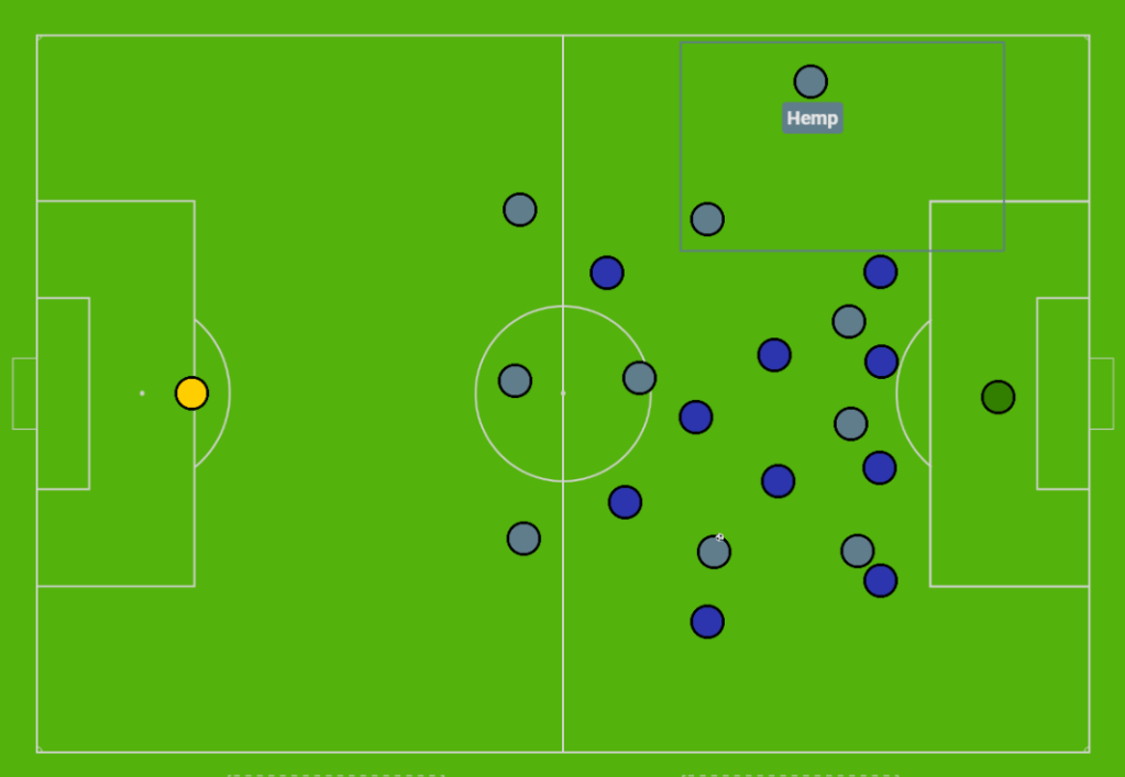 That’s exactly how Hemp was afforded so much time and space in the box for her goal, and she later inverted into half-spaces to draw Chelsea out of position, allowing Weir and Stokes to shift wide instead.