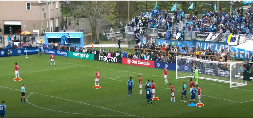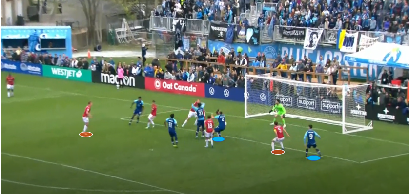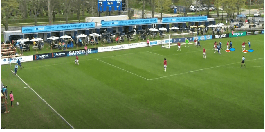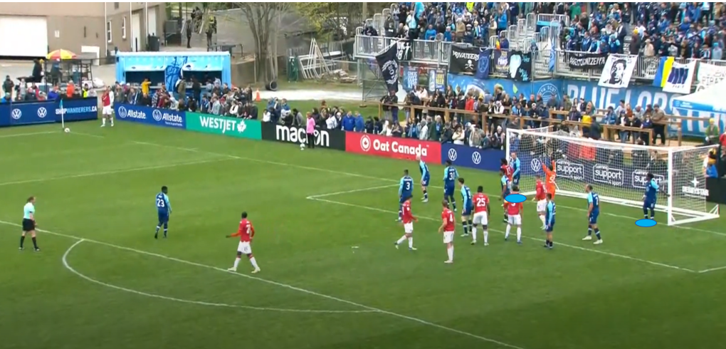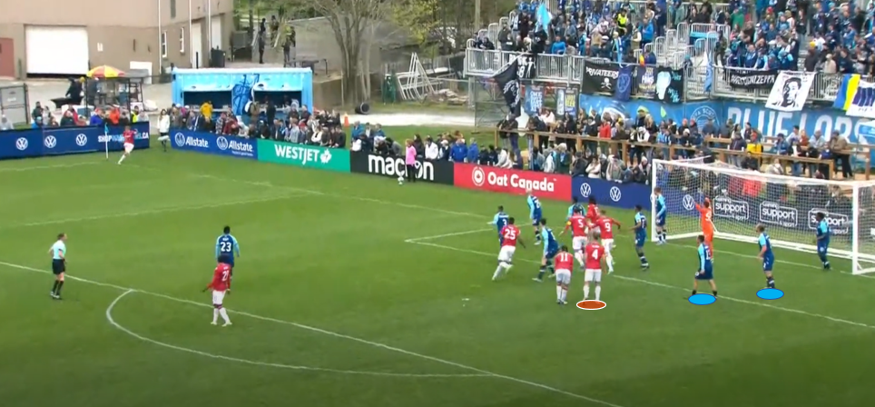 At a bare minimum, HFX should have positioned one of their stronger aerial players around the penalty spot, or even man-marked Daan Klomp – knowing the threat he poses in the air. Stephen Hart’s team have all the commanding tools they need to excellently defend set-pieces and crosses into the box, but positioned their best pieces to the puzzle in the wrong places.