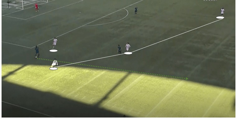 Acting almost like a deep-lying-playmaker in this one, Jamar Dixon completed 8/9 of his long passes in the match, often finding Mavila in space to advance down the left, or using Diaz’s hold-up play to bring others into the match.