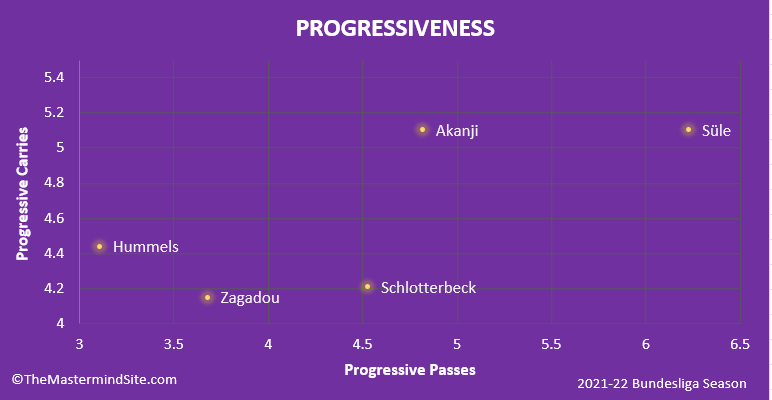 Embed from Getty ImagesEverything that we said about Niklas Süle can also apply to Nico Schlotterbeck. He’s a remarkably complete footballer, capable of holding down the brunt of his defensive responsibilities, whilst supporting build-up and progressively advancing up the field. Dortmund play a possession-based style of football, that requires not only patience, but the ability to correctly perceive moments to carry forward or spray longer passes. Schlotterbeck’s numbers will naturally increase within Dortmund’s 60% possession mantra, even despite already boasting impressive stats.