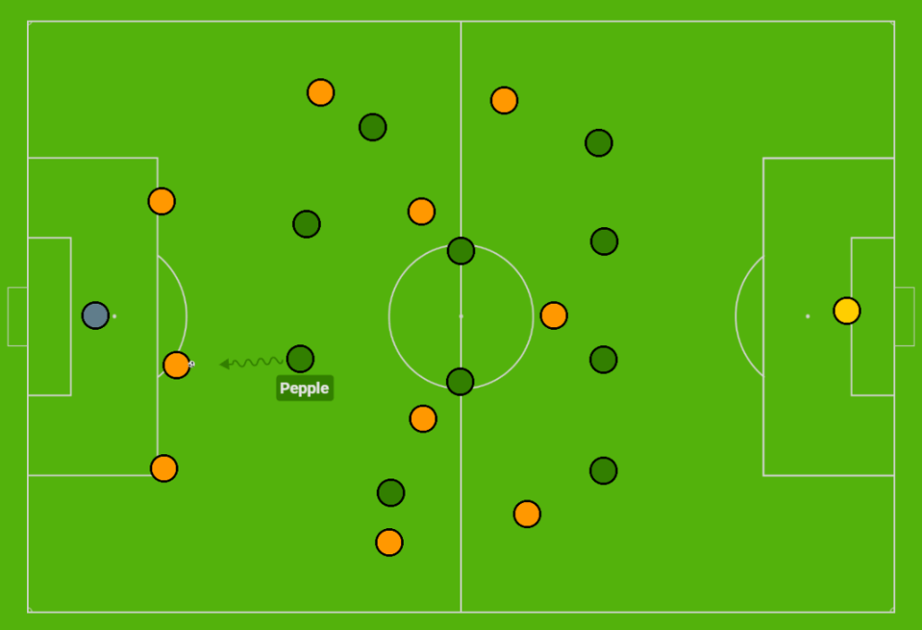 But in the penalty area is where Pepple truly comes to life. His movement often does not even have to be anything out of the extraordinary, as his anticipation toward where he positions himself is already extraordinary. Pepple always seems to find the exact right pocket of space to finish off a chance, or at the very least, work the goalkeeper into oblivion. He’s done a remarkable job in scoring 6 goals in his last 5 matches, but all of those goals have come in exactly the area you’d expect of a penalty box poacher – in the penalty area. In fact, three of those goals came from set-piece situations, where he can make himself an utter nuisance in crowded spaces.