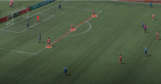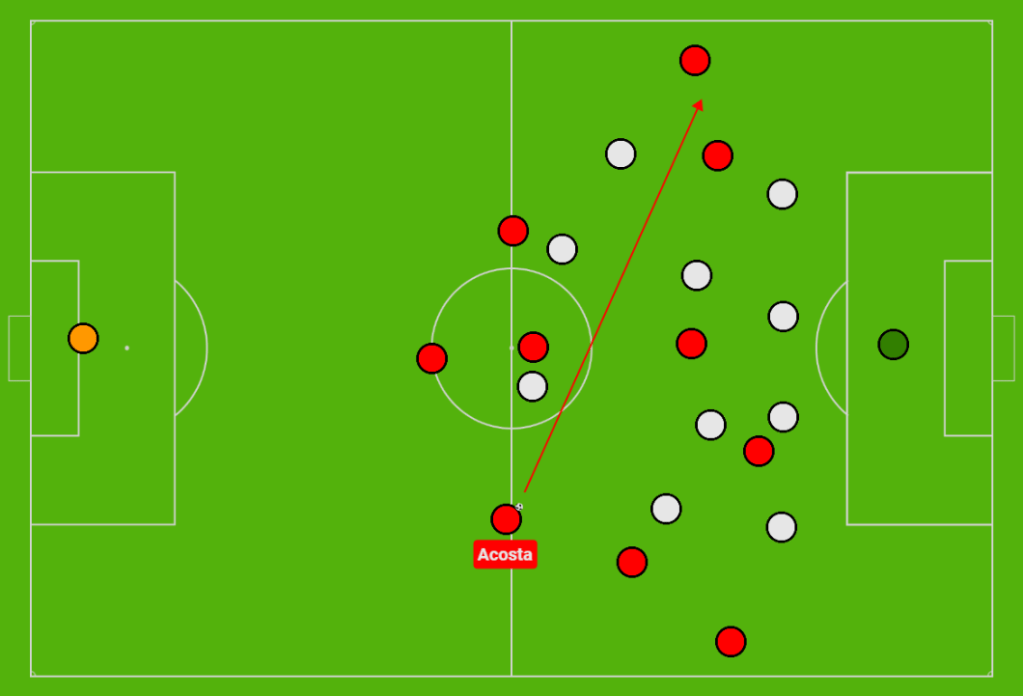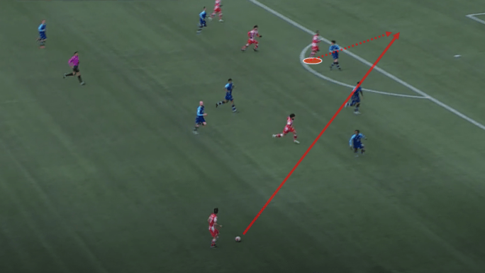 While they love to score goals on the break through the sheer pace and power of Ballou Tabla, they’d prefer to score from smart sequences of play like this. Acosta and Bassett will then look for moments of progressive play where they can either play down the half-spaces or switch play over to the left.