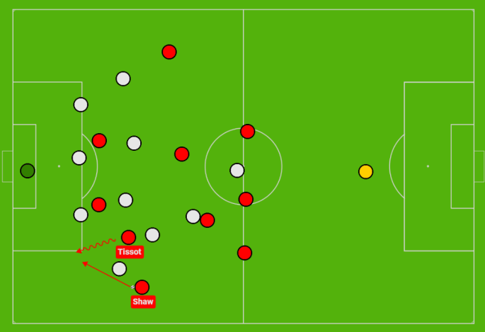 The overloaded left between Tissot and the ‘Inverted Winger’ operating in those left-half-spaces then affords more room for Atletico to combine down the wing and deliver into the penalty area. Malcolm Shaw thrives off crosses into the box, and that means the dynamic wing-play from both Haworth and Tissot can often take center stage.