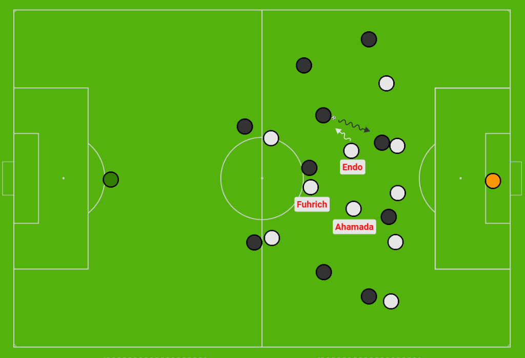 20-year-old Ahamada just so happens to be the influential man on the ball in midfield, after making just 3 substitute appearances last season. The energetic midfielder has often made himself the one assisting the assist as he ventures box to box, and remains key to build-up phases. Führich meanwhile has needed to be more tactically flexible and adaptable than any other Stuttgart player, even stepping up to the front-line in certain pressing moments. Anchoring in between the pair of midfielders is team captain Wataru Endo, the essential piece to breaking up the play and organizing team shape out of possession.