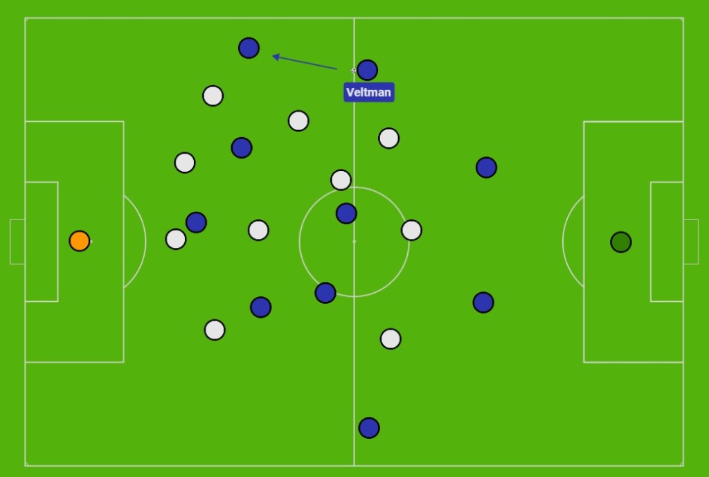- It’s always zonal and ball-oriented, but when a man approaches a player’s zone, they will track that man diligently almost as though it was always meant to be man-to-man. This is not uncommon for elite pressing structures, but a smart way of conducting defense nonetheless.