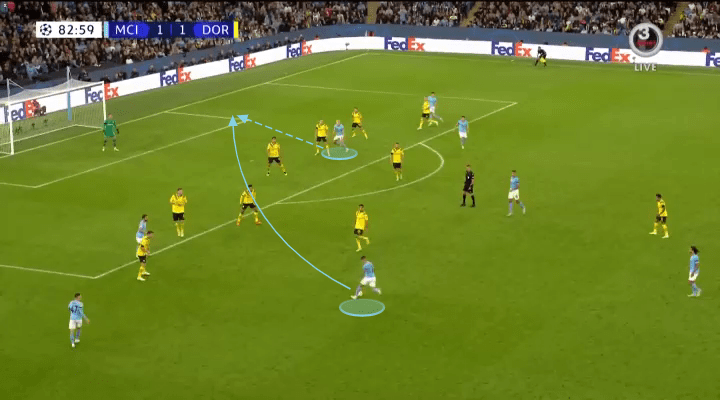 If the cross can then meet the movement, Haaland would be six yards away from goal with a tap-in.