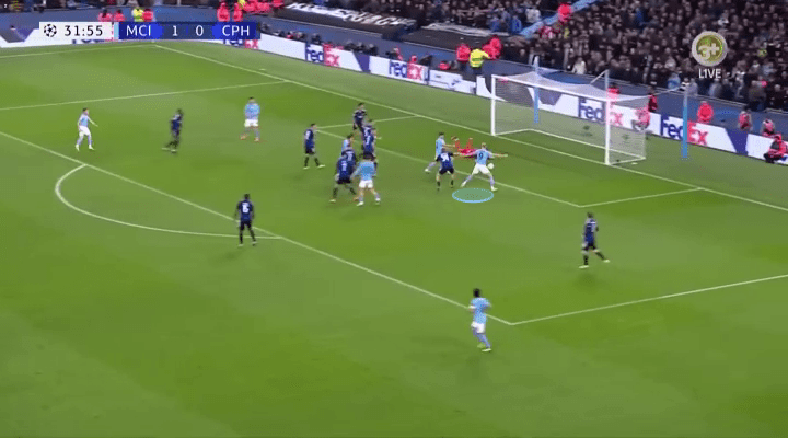 As City continuously look for these cut-back crosses, it’s then a smart and subtle adjustment of the feet that allows the Norwegian to create room for the strike, almost always incorporating some kind of stutter-step toward the opposite direction from where he actually wants to go.