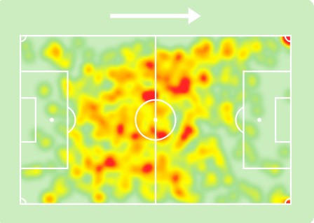 His heatmap paints the picture of an energetic force capable of covering ground all across the pitch, as is Salzburg’s style of play to dominate and control matches from start to finish.