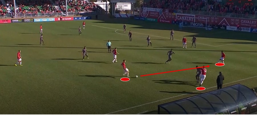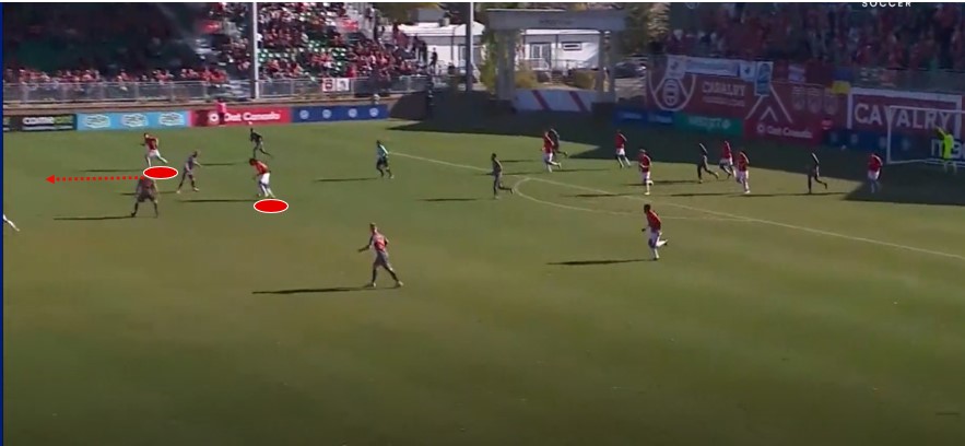 Ali Musse’s beautiful pass into space was met by Joe Mason, and Daan Klomp ran back to front in seconds to head the ball into the back of the net. In the second leg, one of two things will need to happen for Forge. Either they need to find a way to cover for Morgan’s high position in attack by adjusting Bekker or Hojabrpour; or they need to change tactics altogether, such as adopting a back-three or restricting the fullback’s movement forward. Keeping Bekker or Hojabrpour in that left-half-space may be the easiest option for the continuity of the team, as they simultaneously work to deliver from deep in possession. But on the day, Cavalry were excellent in exploiting this space, pulling Malik Owolabi-Belewu out of position, and allowing players to run into the space vacated in behind.