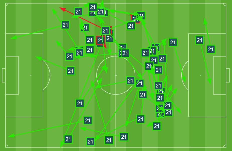They could then use their limited possession to spring forward immediately on the break, where they were fantastic in exploiting the space behind Ashtone Morgan in transition, nicely finding a way to take advantage of the left-back’s high position in attack.