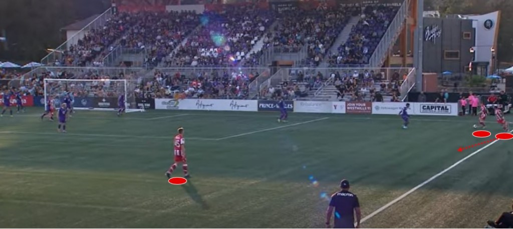In many ways, that was down to Atletico Ottawa’s own defensive structures and solidity, with the likes of Espejo and Acosta putting their bodies on the line. But the spaces were available to attack, and Pacific did well to find those spaces in their pursuits.