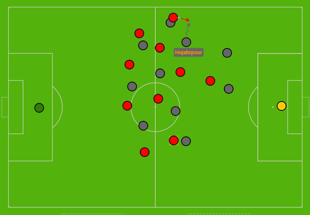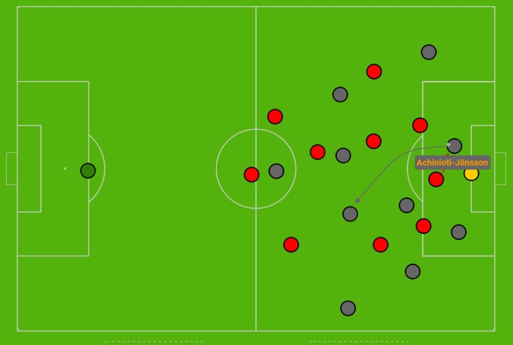 To Forge’s credit, the 2+3 attacking shape that positioned Rama in close proximity to the initial regain also allowed them complete solidity in handling those defensive transitions. They worked tirelessly to immediately compact the field in numbers, and Smyrniotis’ side had clearly worked on this game-plan in training throughout the week. Ballou Tabla couldn’t find any room to exploit Forge on the break, and this ended up paying dividends on the day in limiting Ottleti to just a select few chances. Particularly key to that process was Alessandro Hojabrpour, who fully deserves a man-of-the-match award for his performance.