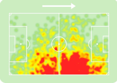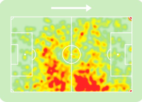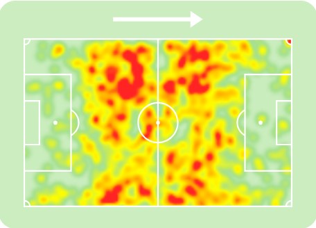 The various positions that each player has played in across the season become highly evident in the heatmaps. This includes Bahous featuring as a wing-back on both sides, Johnston and Bitar playing as a ’10’, and Sissoko featuring as a right-back. Manny Aparicio’s heatmap covers the most width and depth, often playing in a ‘Creative Ten’ role where he had freedom of positioning. But he was always quick to involve himself in every phase of play, often dropping toward the ball in build-up phases and then vigorously pressing from the front.