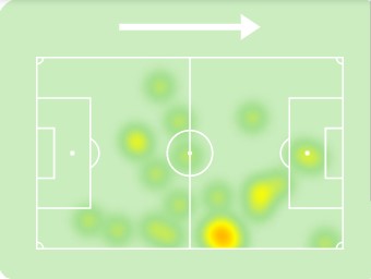 The 17-year-old would then explode on the break into these right-sided-spaces where he eventually made himself clinical in front of goal on two occasions, finishing off two chances from the right side with his right foot.