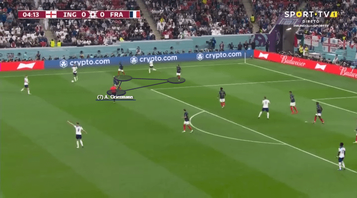 Embed from Getty ImagesAntoine Griezmann has been the pinnacle of a ‘Creative Ten’ at the tournament, creating more chances than any other player, and consistently finding space to receive in between the lines and help his team evade pressure. Within that creative role, he’s preferred to hang out closer to his ex-Barca teammate Ousmane Dembélé, as Giroud and Mbappé skew more toward the left. By nature of floating around in the right-half-spaces more than the left, Griezmann pulls defenders and attention away from Kylian Mbappé – France’s key danger man.