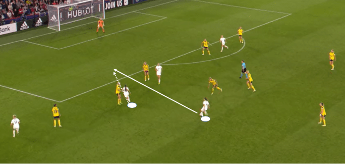 Players like Kevin de Bruyne, Bruno Fernandes and Fran Kirby have become particularly adept at not only moving into these channels to create chances, but in moving in such a vivacious manner that the opposition have no time to react, thus giving that in possession chance creator more time to work their magic. Of particular importance, the half-spaces have the advantage of being more conducive to whipping the ball away from goal. While this is not the only type of pass that can be given from the half-spaces, it is one that the likes of KDB and Bruno Fernandes thrive off delivering, and are often difficult to defend as they spin away from the noggins of the defenders.