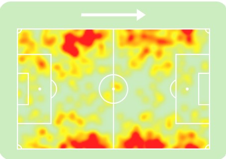 Since he’s a standout dribbler capable of pulling off those bamboozling moments, this will suit the wing-back well. You never know quite which way he’s going to turn, even if he does have a slight right-sided dominance. From the right, he’s much more direct in taking players on down the line and then delivering that power. From the left, that’s where you might see more variety and whip, as he cuts inside onto his stronger side and looks for the back-post, or quickly shifts the ball back onto his left.