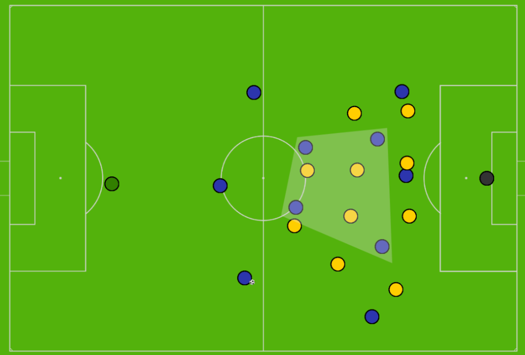 Embed from Getty ImagesBut in between the wide isolations, their preferred method of creating chances is through the centre of the pitch (66% of their shots coming centrally), making good use of their box midfield. The midfielders’ positioning is fundamental to progressing the ball through the thirds and working the ball in behind for Lewandowski because of the high number of angles they create for the ball carrier.