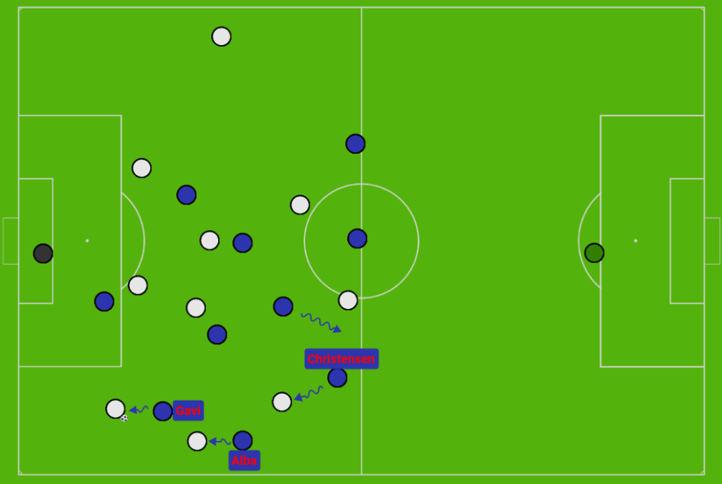 Since Gavi will often like to drift inside from that left wing position, this is where someone like Balde or Alba can gallop forward and go on the overlap.
